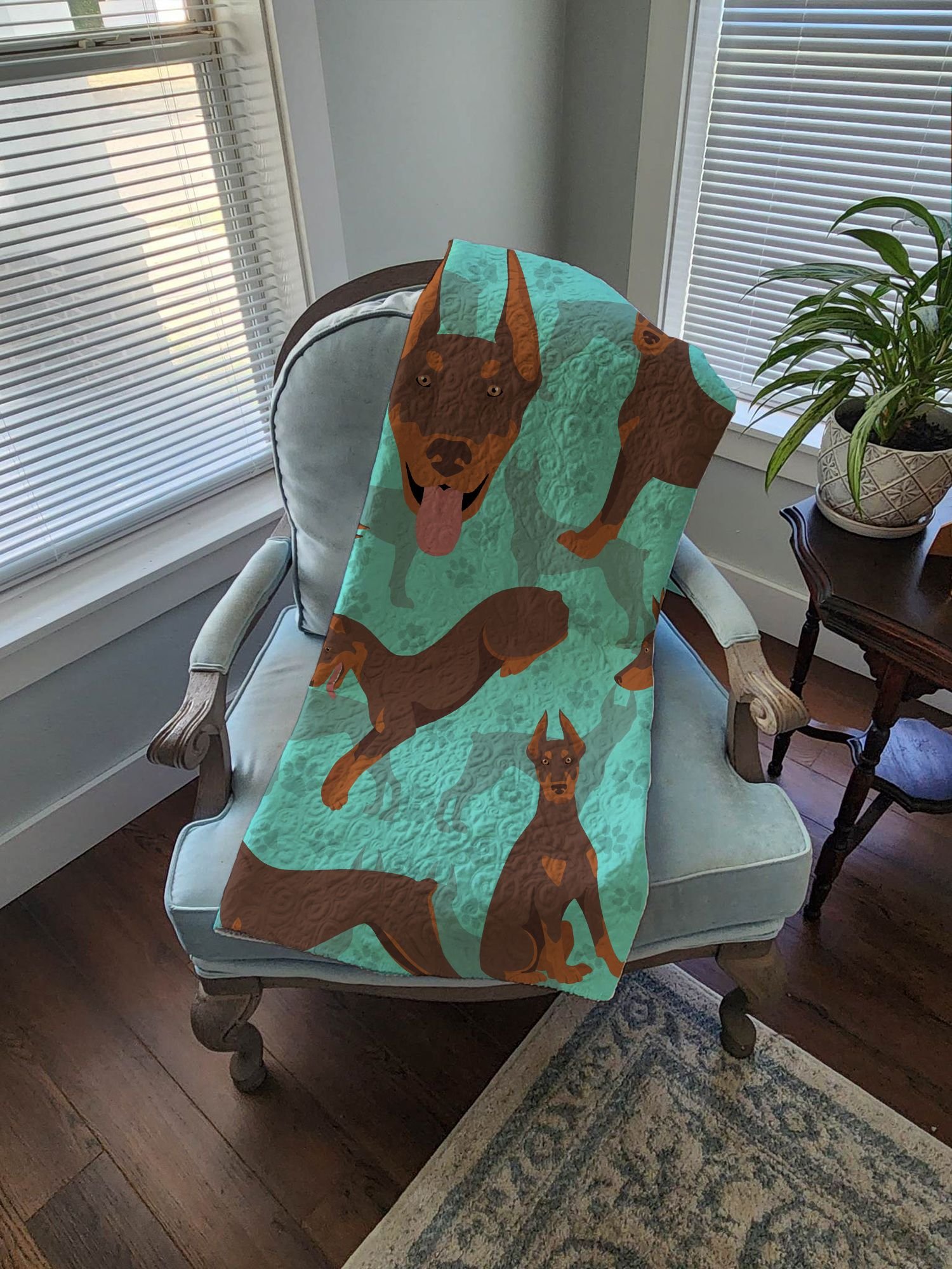 Quilted Blanket 50x60 featuring breed specific Doberman Pinscher artwork. Our quilted throw blanket is a must-have for anyone who values Form as well as Function! It measures 50 inches by 60 inches and is trimmed with a whip stitch. This heavier blanket is sure to keep away any draft or breeze without causing you to overheat. Use it as an accent piece for furniture, wrap your child in its comforting warmth, keep your pet calm on visits to the vet's office, or use it as an extra layer of softness for any crib or kennel. Here at Caroline's Treasures, we know that some dogs love to share sleeping accommodations with their favorite humans; This blanket makes a great coverlet for the foot of your bed so your four-legged companion has a warm, soft area to snooze on all night without getting your bedding dirty over time. When the blanket does get too many pawprints on it, simply throw it in the wash and follow the care instructions on the tag to restore it to like-new condition. This blanket is made of 67% Polyester and 33% Cotton to ensure durability and comfort. Filled with 100% Cotton and quilted, it does an excellent job at keeping the chill at bay. This is from Caroline's Treasures Dogs category of products.