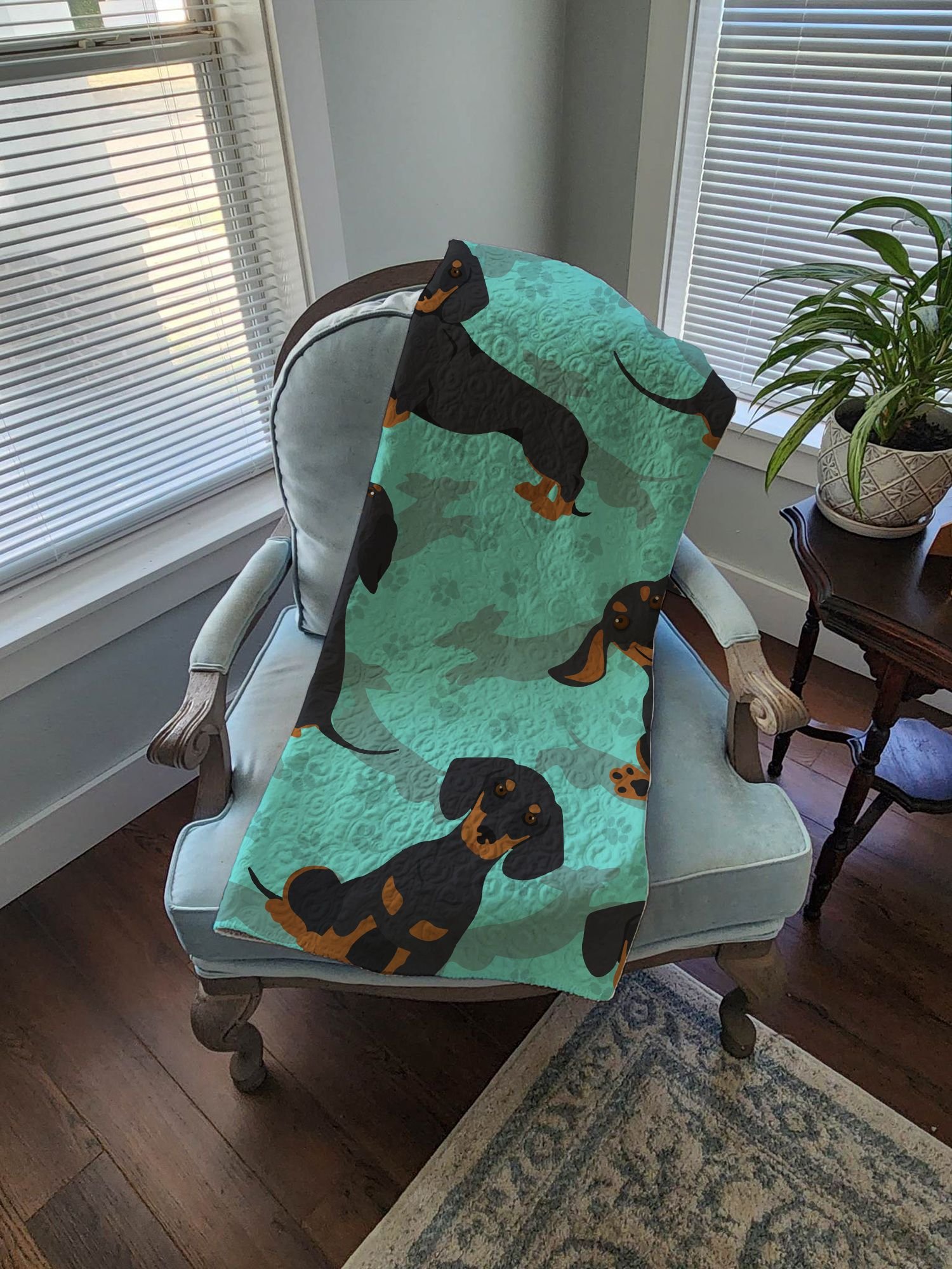 Quilted Blanket 50x60 featuring breed specific Dachshund artwork. Our quilted throw blanket is a must-have for anyone who values Form as well as Function! It measures 50 inches by 60 inches and is trimmed with a whip stitch. This heavier blanket is sure to keep away any draft or breeze without causing you to overheat. Use it as an accent piece for furniture, wrap your child in its comforting warmth, keep your pet calm on visits to the vet's office, or use it as an extra layer of softness for any crib or kennel. Here at Caroline's Treasures, we know that some dogs love to share sleeping accommodations with their favorite humans; This blanket makes a great coverlet for the foot of your bed so your four-legged companion has a warm, soft area to snooze on all night without getting your bedding dirty over time. When the blanket does get too many pawprints on it, simply throw it in the wash and follow the care instructions on the tag to restore it to like-new condition. This blanket is made of 67% Polyester and 33% Cotton to ensure durability and comfort. Filled with 100% Cotton and quilted, it does an excellent job at keeping the chill at bay. This is from Caroline's Treasures Dogs category of products.